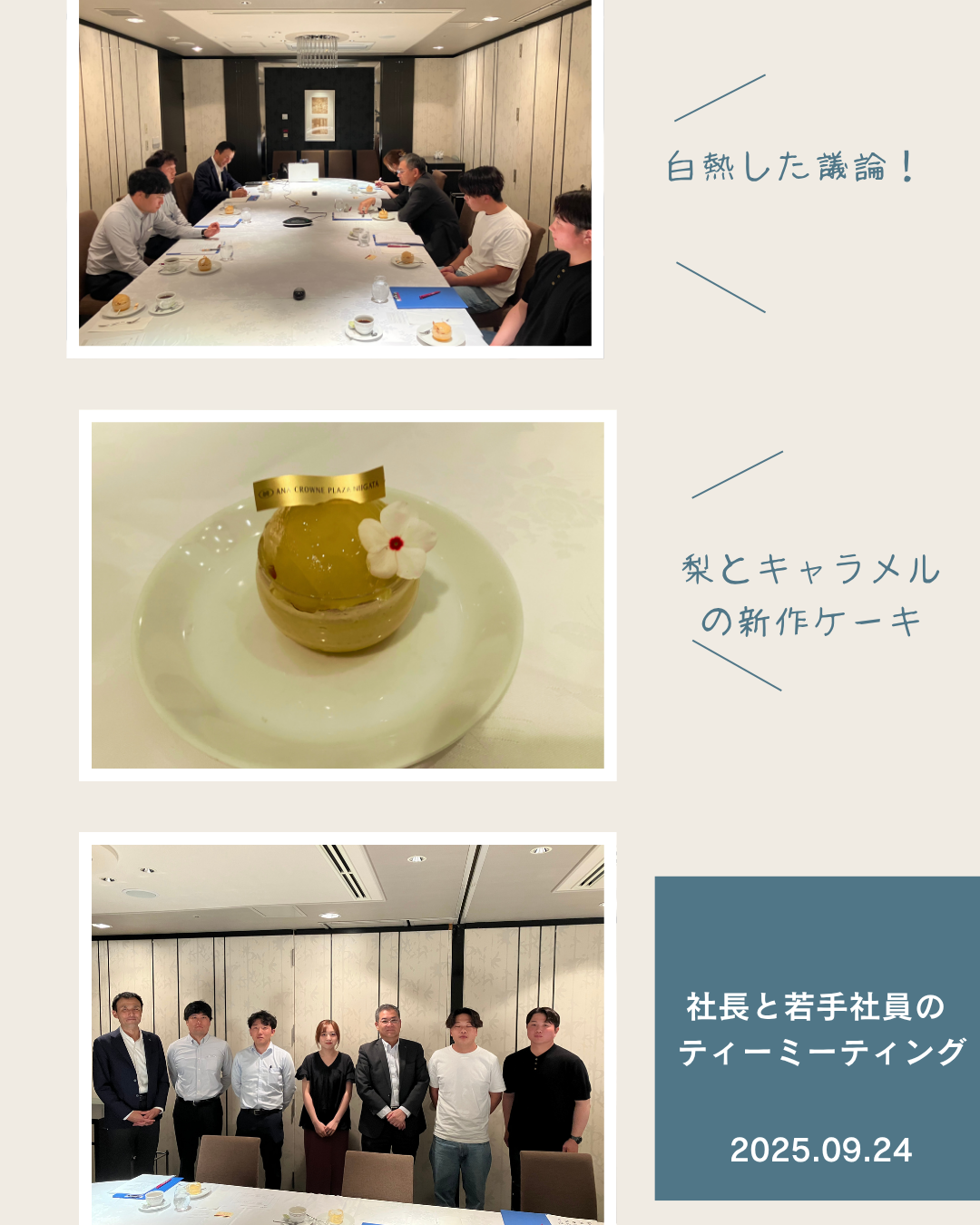 2025年9月24日にANAクラウンプラザホテル新潟の天壇にて第6回となります「社長と若手社員のティーミーティング」を開催しました🍰