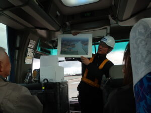普段は見ることのできない港の現場をご覧いただきながら、「港は決して遠い存在ではなく、皆さんの身近にある」ということをお話しさせていただきました。